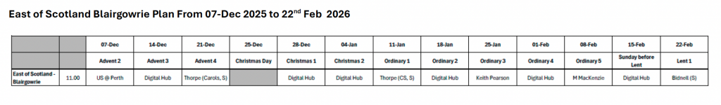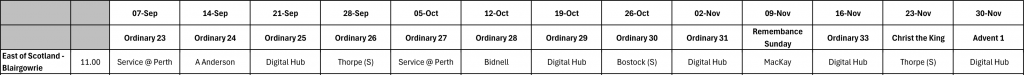 The Blairgowrie and Rattray Methodists are part of the East of Scotland Methodist Church which in turn is part of the Angus, Dundee, and Perthshire Methodist Circuit, and the Methodist Church in Scotland.
